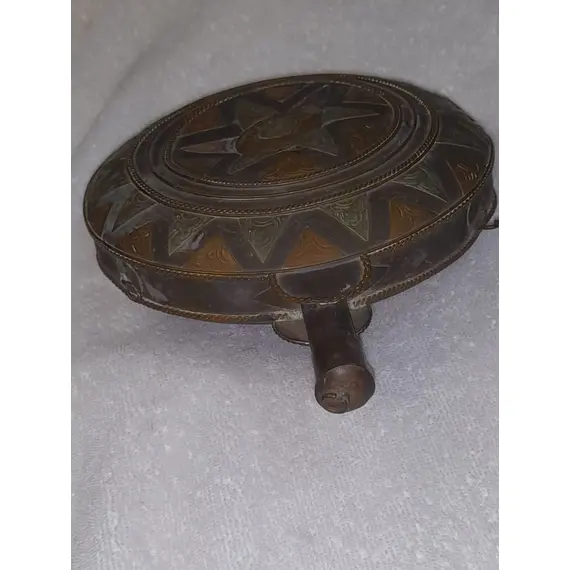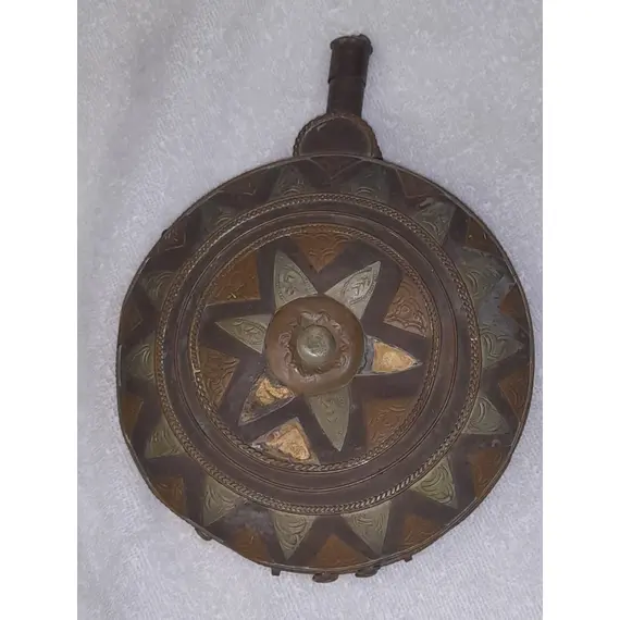 زمزمية أصلية مصنوعة من النحاس المطعّم بالفضة، قديمة جدًا وتعود لعقود طويلة، بحالة ممتازة بالنسبة لعمرها.