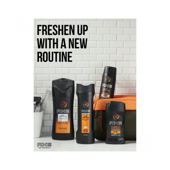 have not verified it. See our disclaimer AXE Body Spray for Men Dark Temptation 8 oz is part of the Dark Temptation male grooming range from AXE. It is a subtle, sweet fragrance with a hint of spice. A blend of hot chocolate, amber and red peppercorn keep you smelling great. A few quick sprays of AXE Body