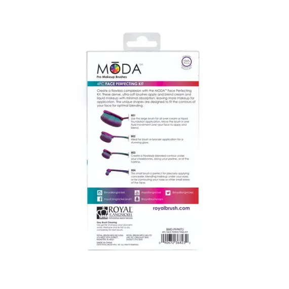 مجموعة فرش مزج المكياج ذات المقابض من MODA Prismatic Face Perfecting (4 قطع)