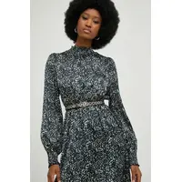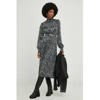 - المميزات: فستان متوسط الطول، خصر، بدون أكمام، رقبة دائرية، تنورة من الأسفل، مثالي للربيع والصيف والخريف